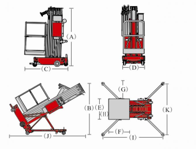 Nó được sử dụng cho mục đích làm việc trên không người duy nhất. Chúng được tạo thành từ nhôm cao cấp và được trang bị với các bánh xe phổ thông, dễ dàng đẩy xung quanh để các trang web được chỉ định, cấu trúc đẹp, cơ thể chính nhỏ gọn, ánh sáng trọng, an toàn và đáng tin cậy. Nó được điều hành bởi các xi lanh kính thiên văn mà là mạnh mẽ và đáng tin cậy làm việc và các bảng điều khiển có sẵn trên nền tảng thang máy và mặt đất.