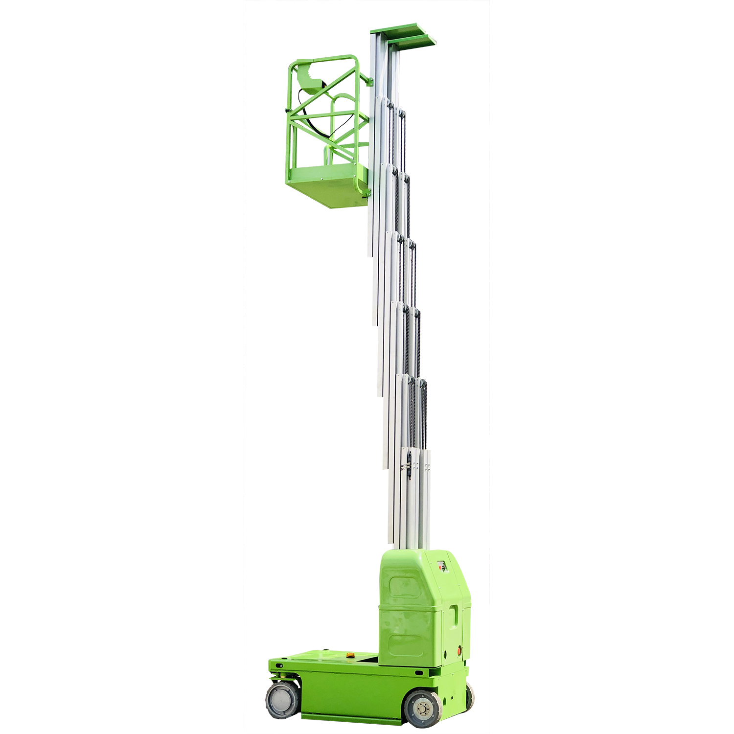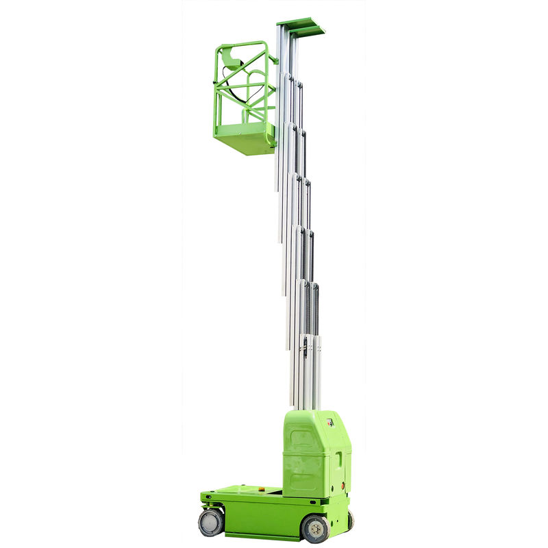 Green 9m Double Mast Self Propelled Vertical Lift With Hydraulic Turning Wheel