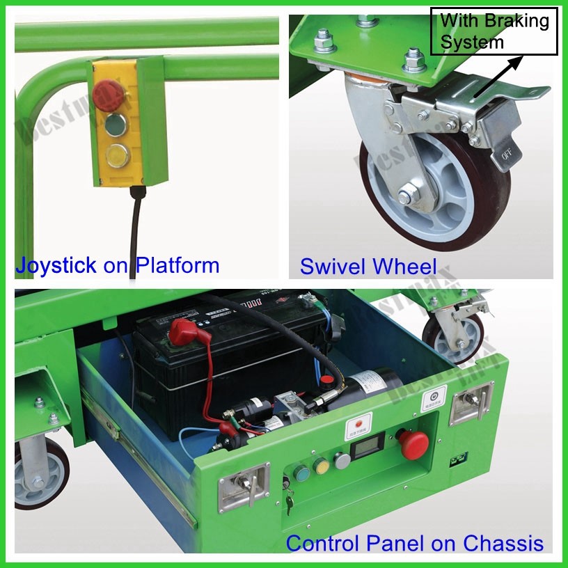 The operators can operate the machine up&down on platform and ground. (It lifts by battery power)