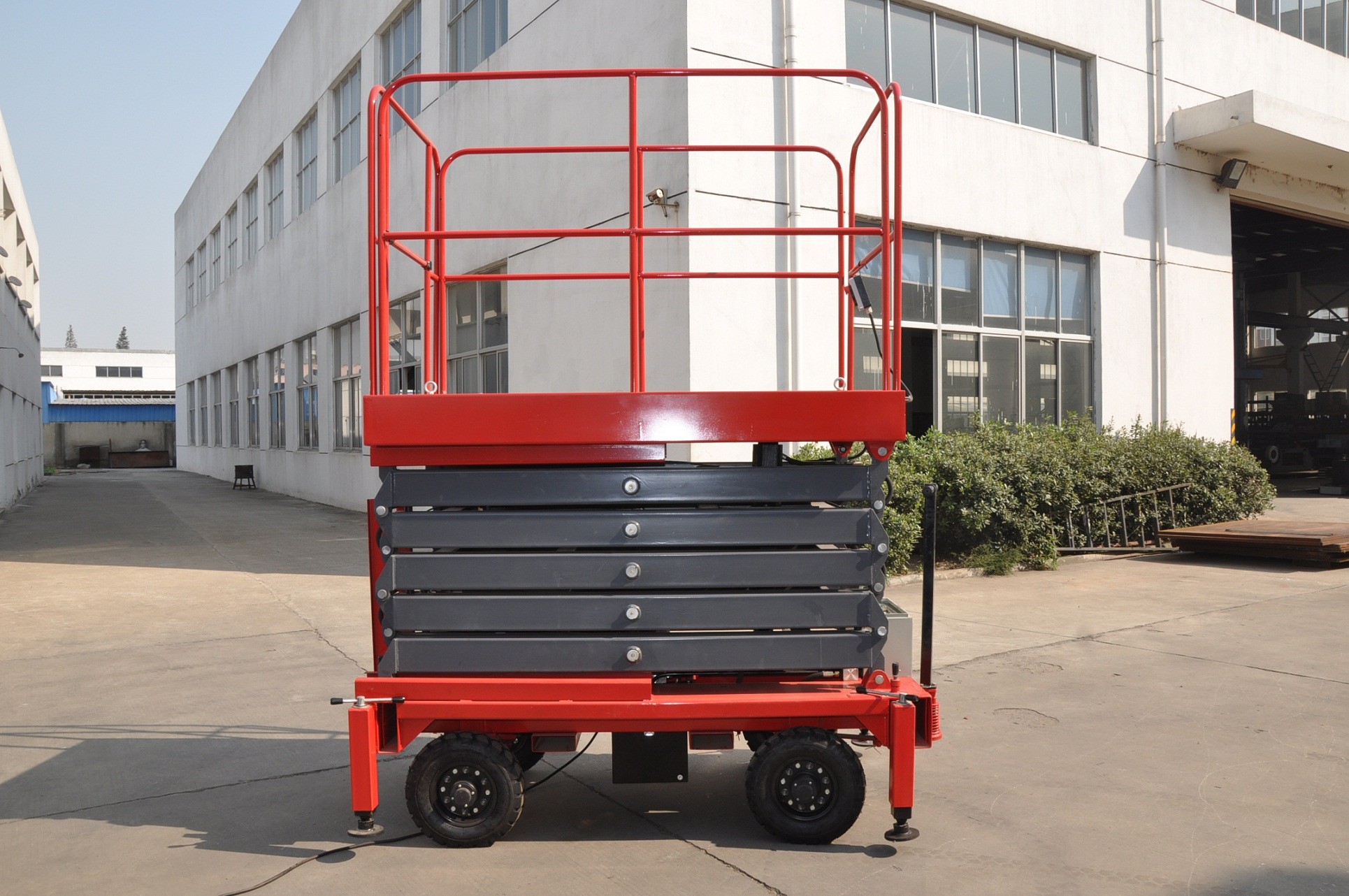 Điện thoại di động Scissor thang máy với kéo thiết bị, thiết bị kéo là một tính năng tùy chọn của thang máy kéo di động, vì nó được điều khiển bằng điện có thể tiết kiệm sức lao động của nhà điều hành rất nhiều.