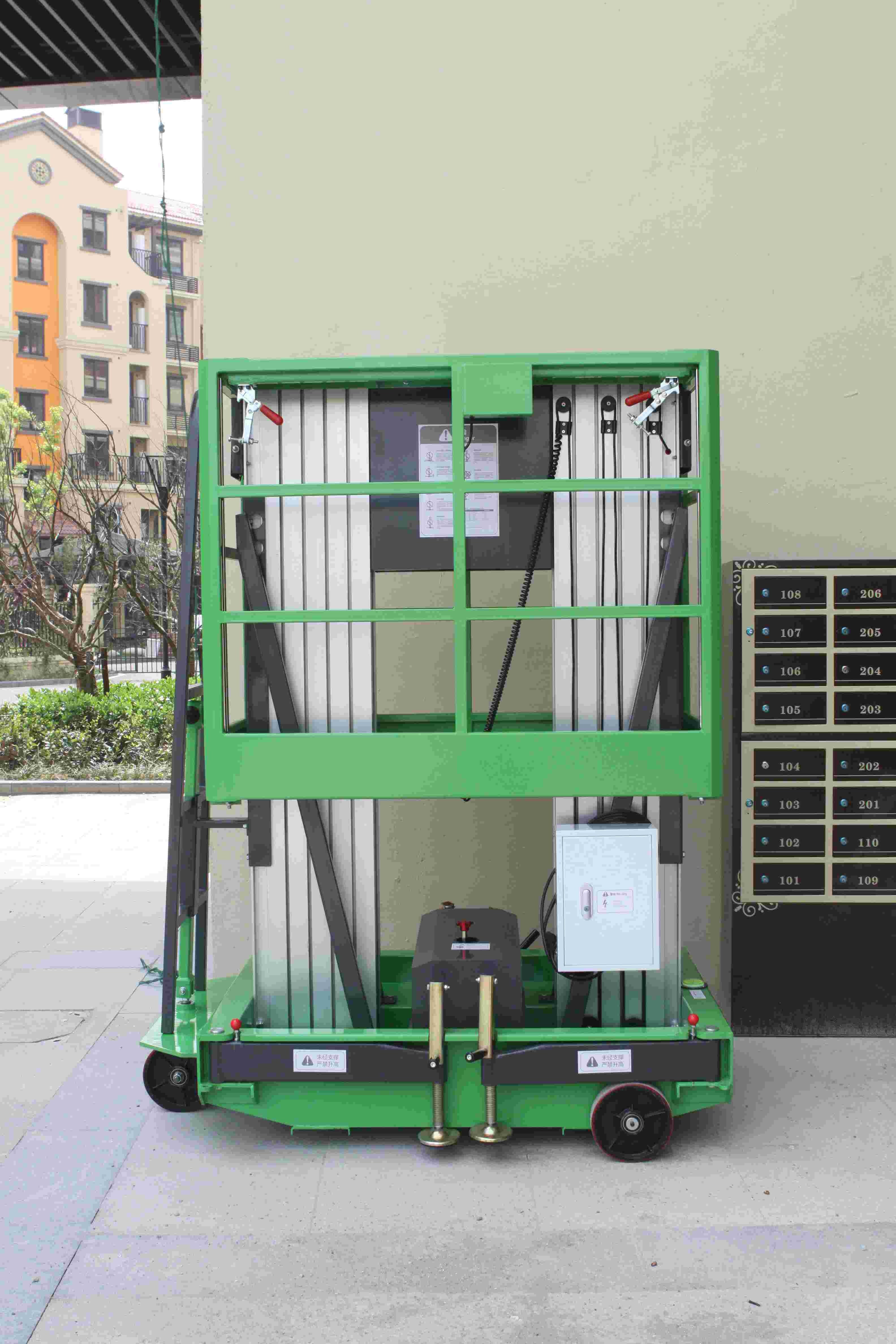 Nó được sử dụng chủ yếu cho việc cài đặt và bảo trì các không gian hẹp như khách sạn sao, nhà xưởng hiện đại, trường kinh doanh, khách sạn, sảnh, nhà hàng, nhà ga, hội trường triển lãm và trung tâm mua sắm, đó là một người trợ giúp tốt cho các thiết bị bảo trì, sơn trang trí; Dễ dàng đi qua các cửa thông thường và thang máy, tiêu thụ năng lượng thấp, không gây ô nhiễm, không có thiệt hại đến các căn cứ. Chiều cao nâng khoảng từ 6m đến 12m và sức nâng khác nhau từ 125kg đến nguồn điện 200kg.The có thể là 220V, 380V hoặc pin phí.
