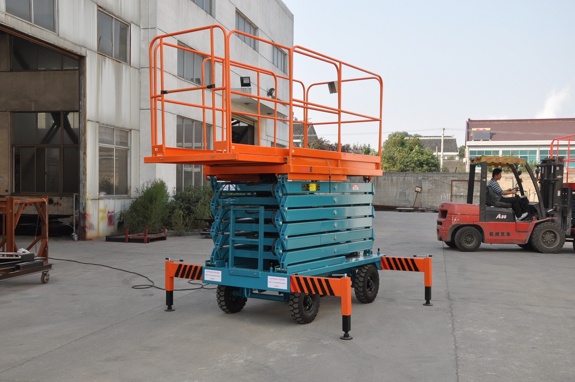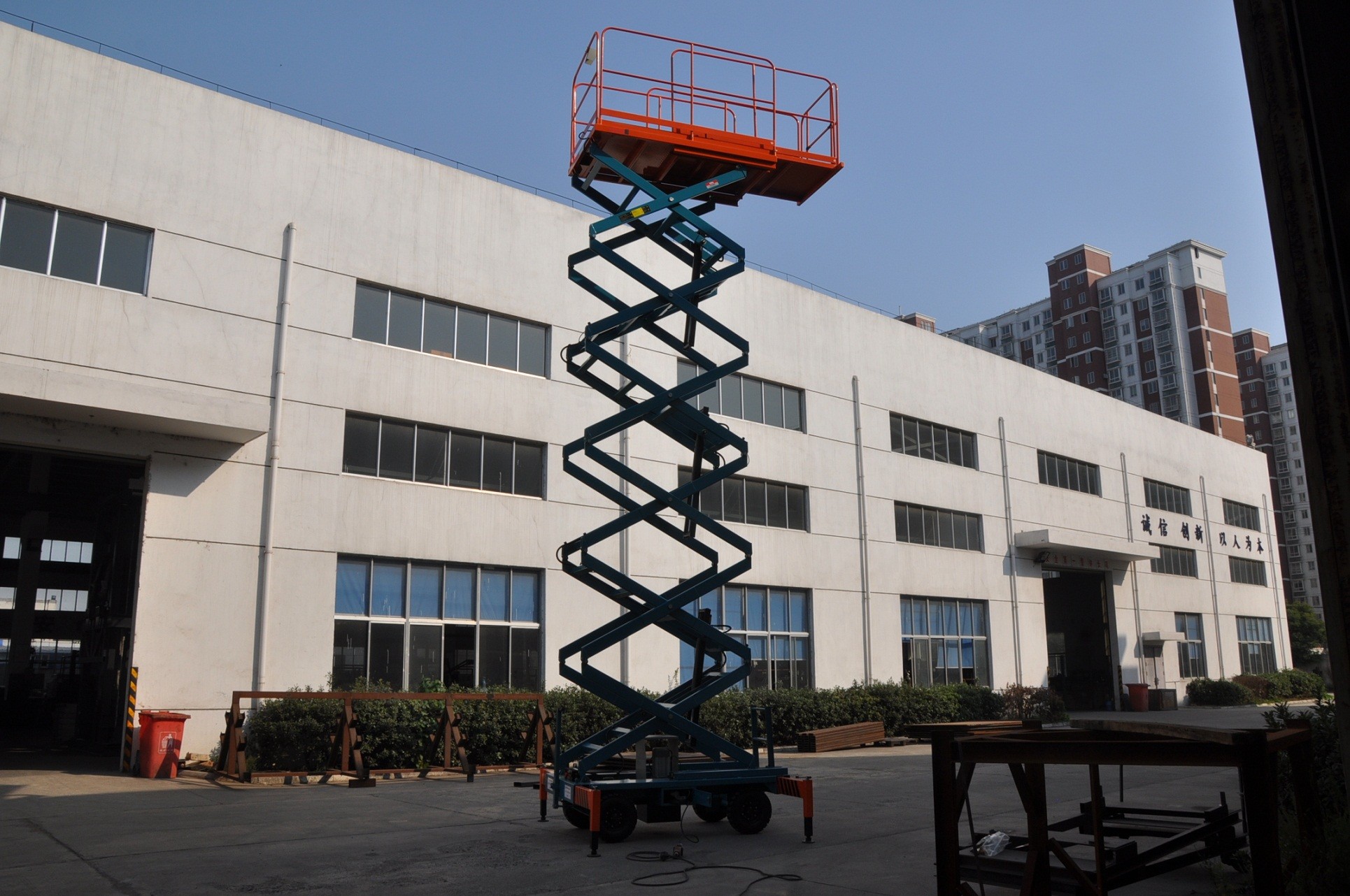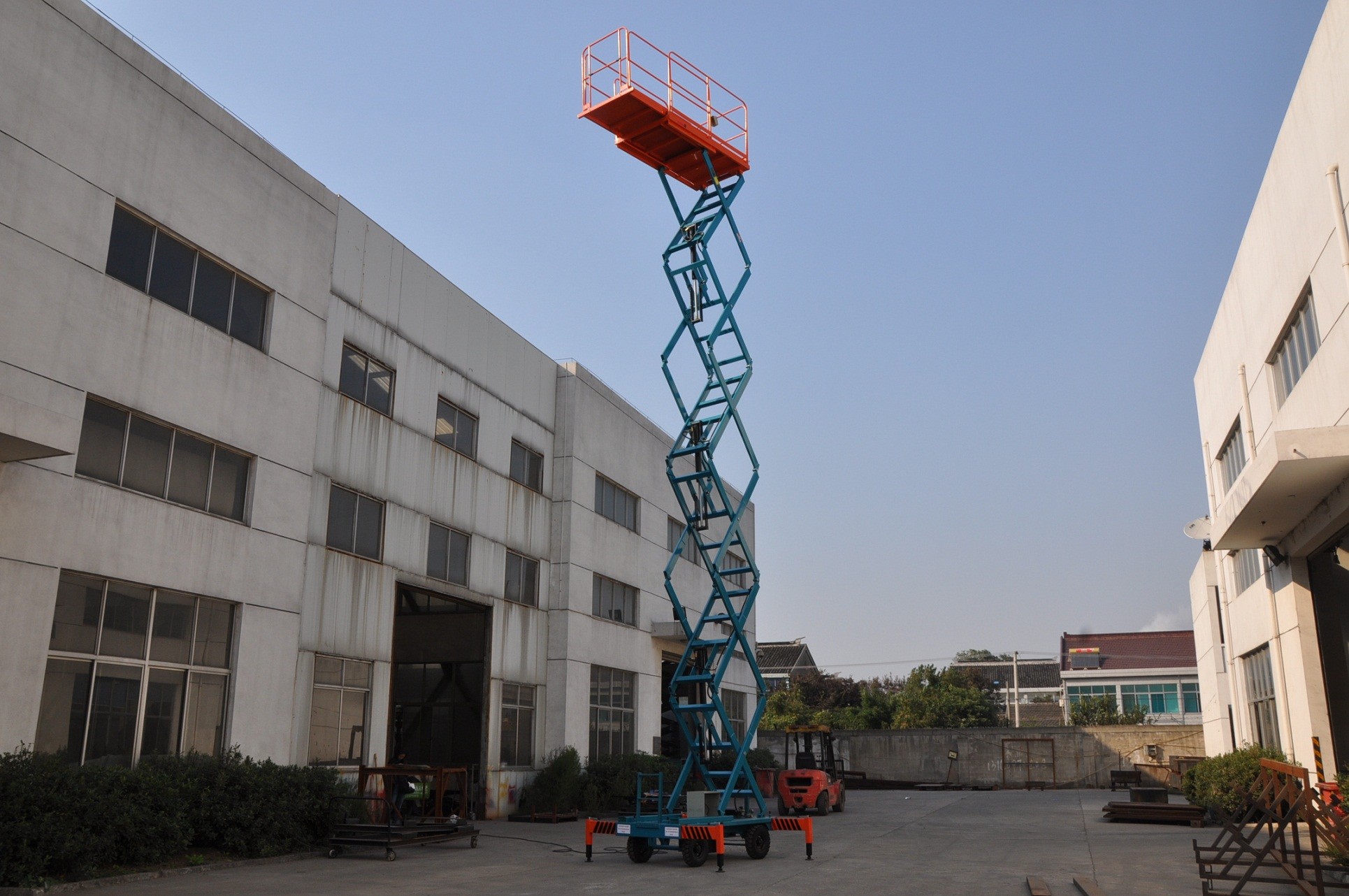 Cơ cấu cắt kéo cho phép ổn định đáng tin cậy khi thang máy tăng lên, nền tảng rộng lớn và tải trọng cao có được làm việc trên không có hiệu quả hơn và an toàn hơn.