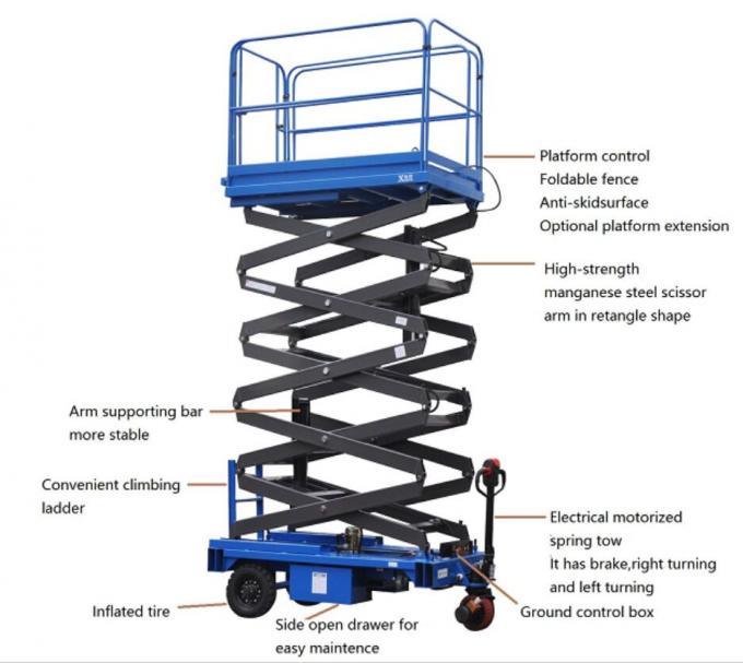 Nguyên tắc hoạt động: (1) bằng điện điều khiển hệ thống thủy lực để hỗ trợ nâng phong trào. (2) Bốn bánh xe cố định để hỗ trợ phong trào đi du lịch